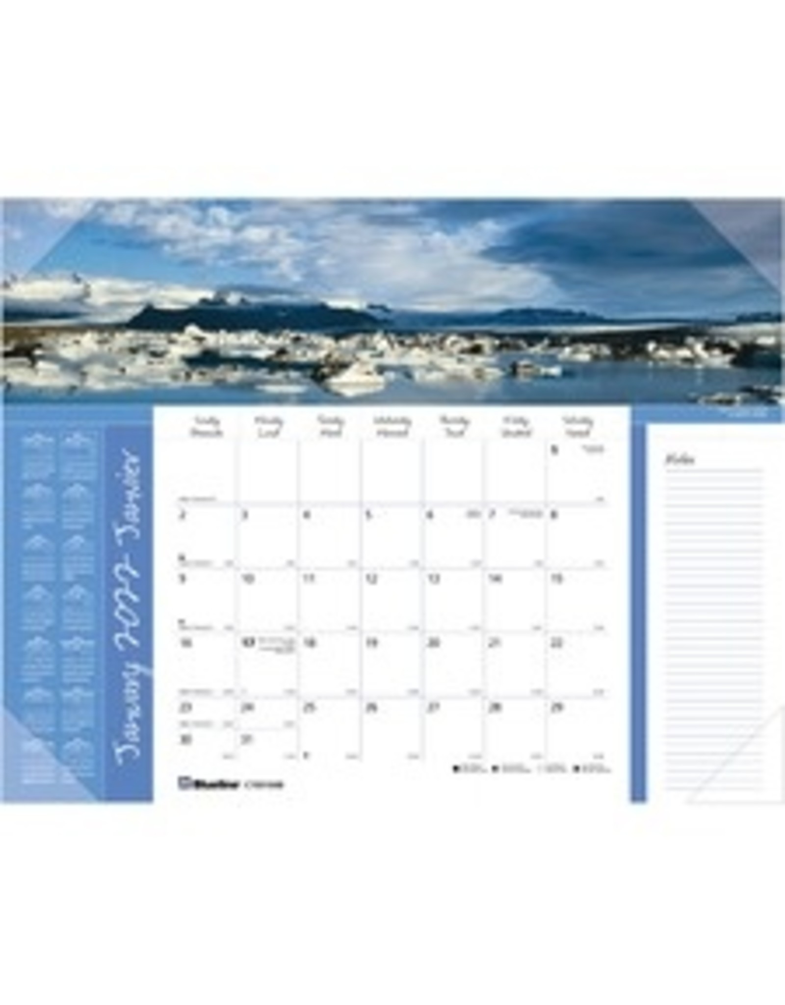 Blueline Image Collection World Panorama Desk Pad Calendar - Monthly - 1 Year - January till December - 1 Month Single Page Layout - 17" x 21 1/4" Sheet Size - Desk Pad - Vinyl, Chipboard - Bilingual, Notepad