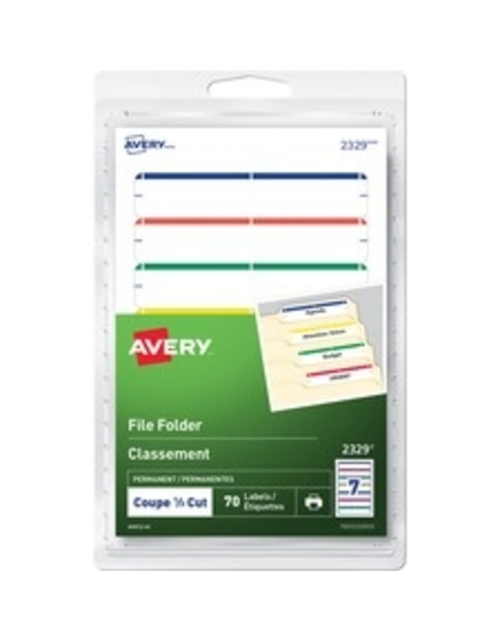 Avery® Print or Write File Folder Labels - 19/64" Height x 3 1/2" Width - Permanent Adhesive - Rectangle - Inkjet, Laser - Blue, Green, Red, Yellow - 7 / Sheet - 10 Total Sheets - 70 / Pack