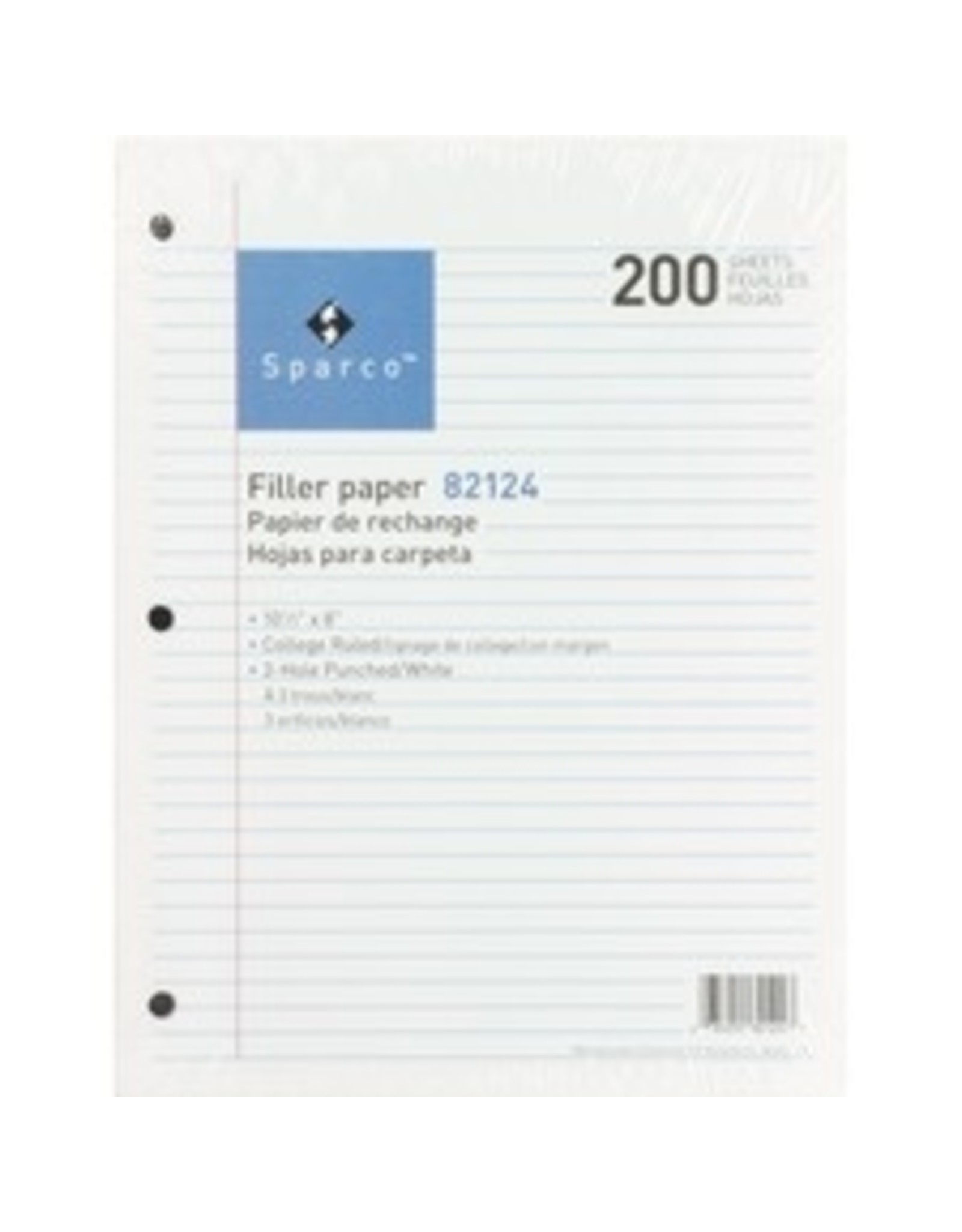 Sparco Standard White 3HP Filler Paper - 200 Sheets - College Ruled - Ruled Red Margin - 16 lb Basis Weight - 8" x 10 1/2" - White Paper - Bleed-free