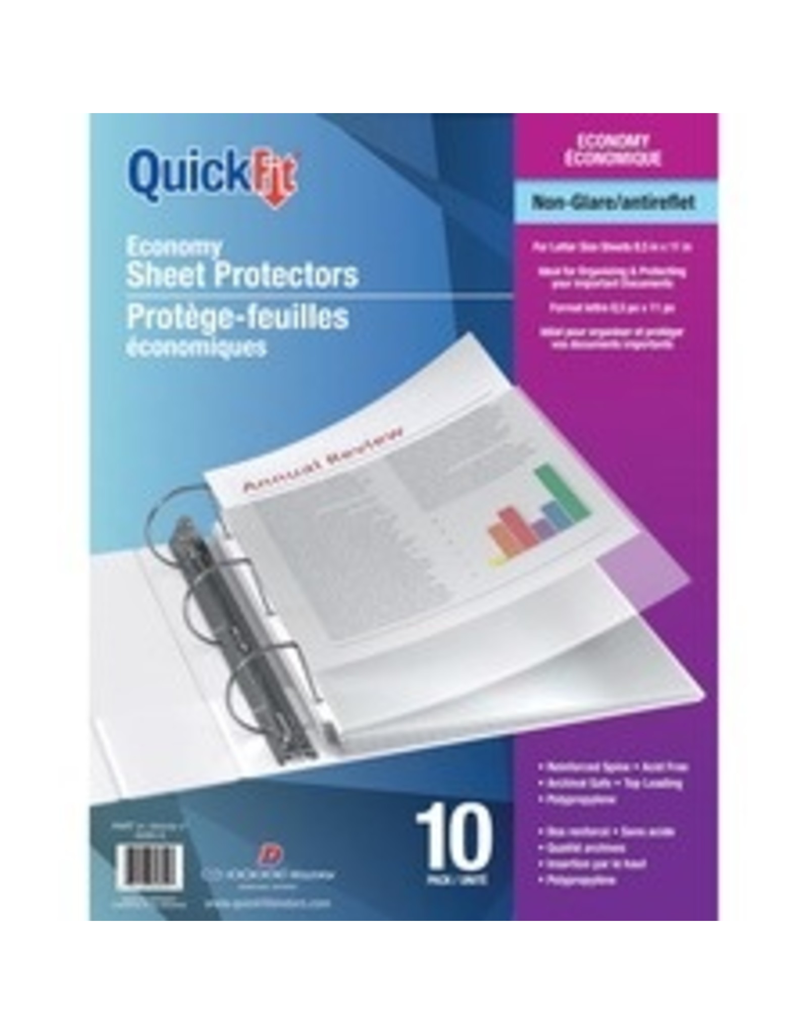 QuickFit Non-glare Economy Sheet Protectors - 8.5" Width x 11" Length - For Letter 8 1/2" x 11" Sheet - 3 x Holes - Rectangular - Polypropylene - 10 / Pack